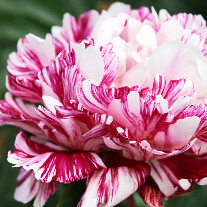 Пион Candy Stripe (Кенди Страйп) – это изысканный сорт, который станет настоящим украшением вашего сада. Его крупные, махровые цветы привлекают внимание своими нежными белыми лепестками с изящными розовыми полосками, создавая эффект конфетных полосок. Этот пион отличается не только своей красотой, но и приятным ароматом, который наполнит ваш сад сладкими нотками.